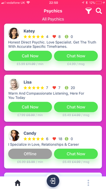 Psychics.lv Psychic Reading은 전화 또는 채팅을 통해 즉각적인 심리상담을 제공합니다. 전문 상담가들은 걱정을 불러일으킬 수 있는 다양한 삶의 영역에 대해 자세한 통찰력을 제공합니다. 격동적인 관계, 직업 변화 또는 잠재적인 이주에 대한 의문이 있을 때 진정하고 진솔한 심리상담가들이 안내해 드립니다.